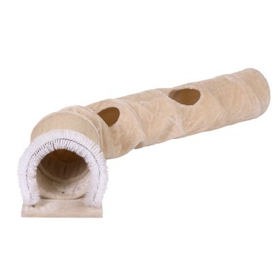 Pri vhodu, puhasto mehkem valju se nahaja log s krtačkami, ki služijo za drgnjenje in crkljanje. Na podlogi iz sisala na valju si lahko vaša mačka brusi kremplje in poteši naravni nagon po praskanju. Tako kremplji prizanesejo vašim blazinam, preprogam in pohištvu. S tem združi igralni tunel visoko mero veselja z uporabno vsako dnevno potrebščino in obogati vsako mačje gospodinjstvo.